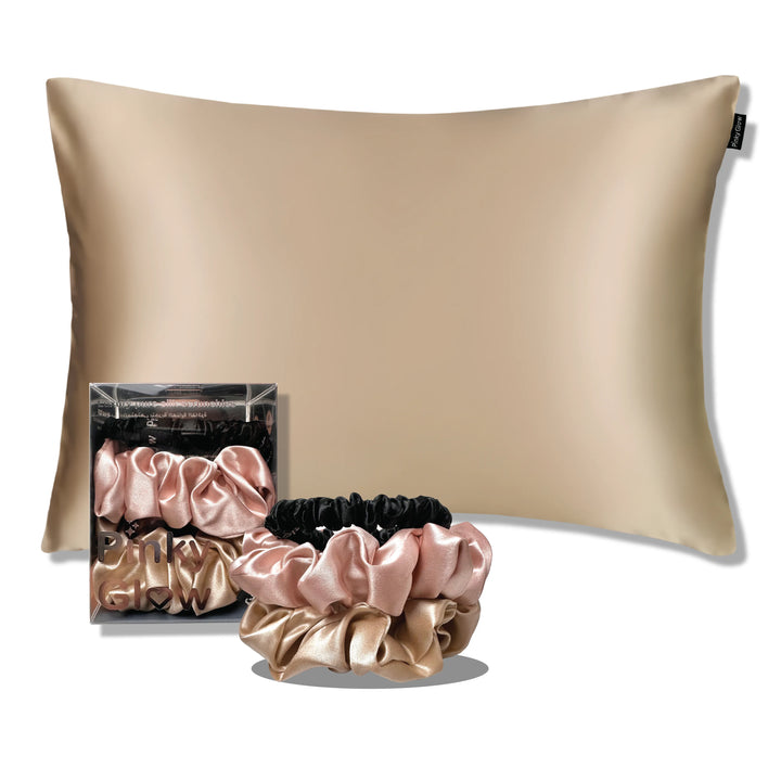 This set contains: • Silky pillowcase beige color – queen size (75×50 cm) Equipped with a hidden zipper for a secure closure, • Mocha 3-piece tie set size Large Warm...