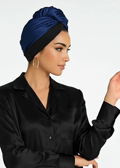 Pure Silk Hair Towel 2 in 1 - Royal Navy Color - 22Momme