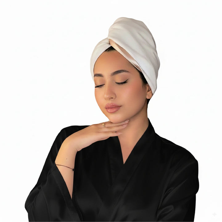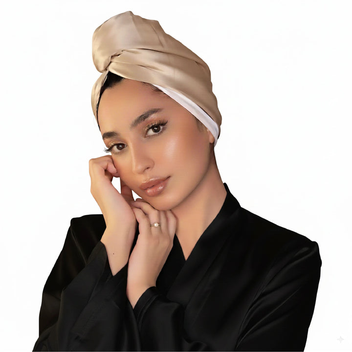 منشفة الشعر حرير نقي 2 في 1 - لون بيج - 22Momme