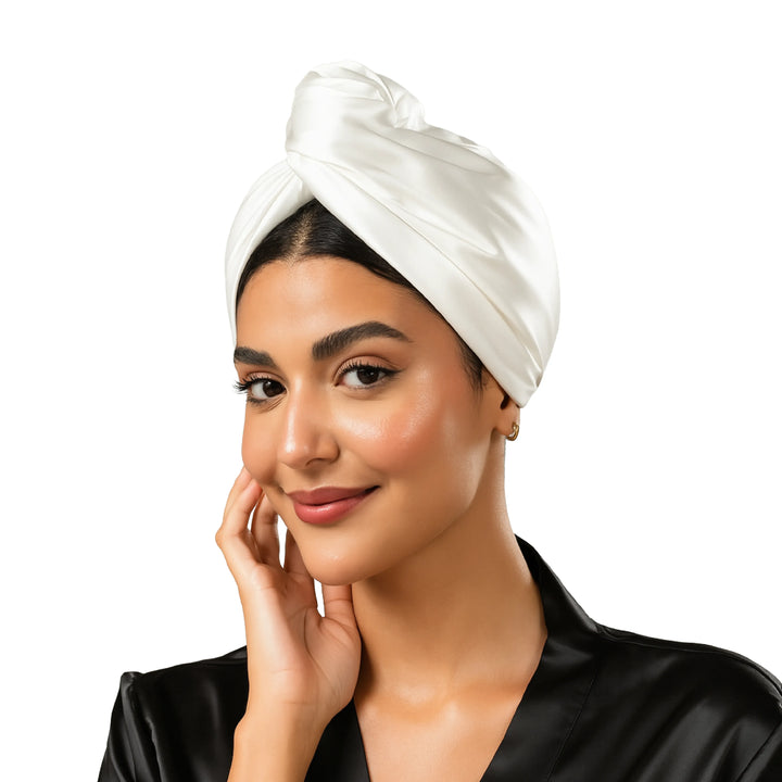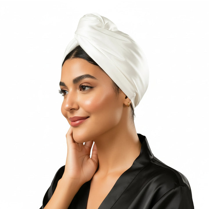 منشفة الشعر حرير نقي 2 في 1 - لون أبيض لؤلؤي - 22Momme