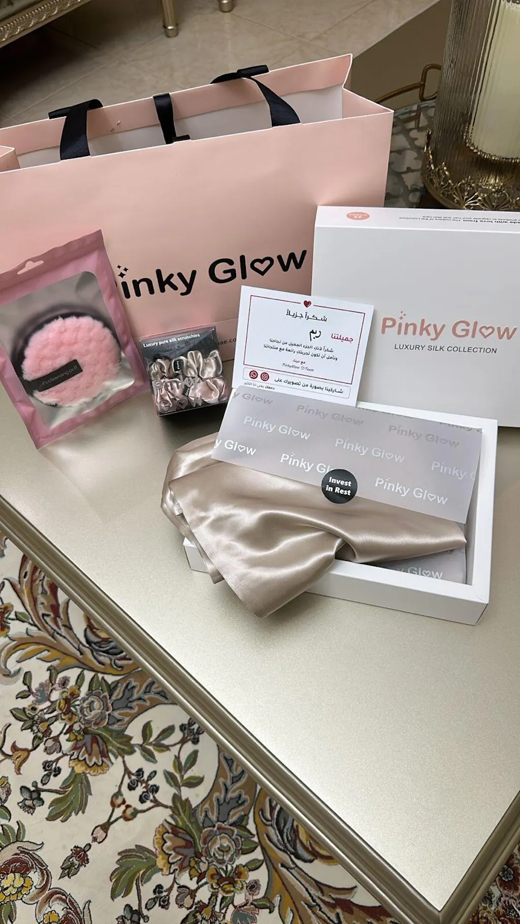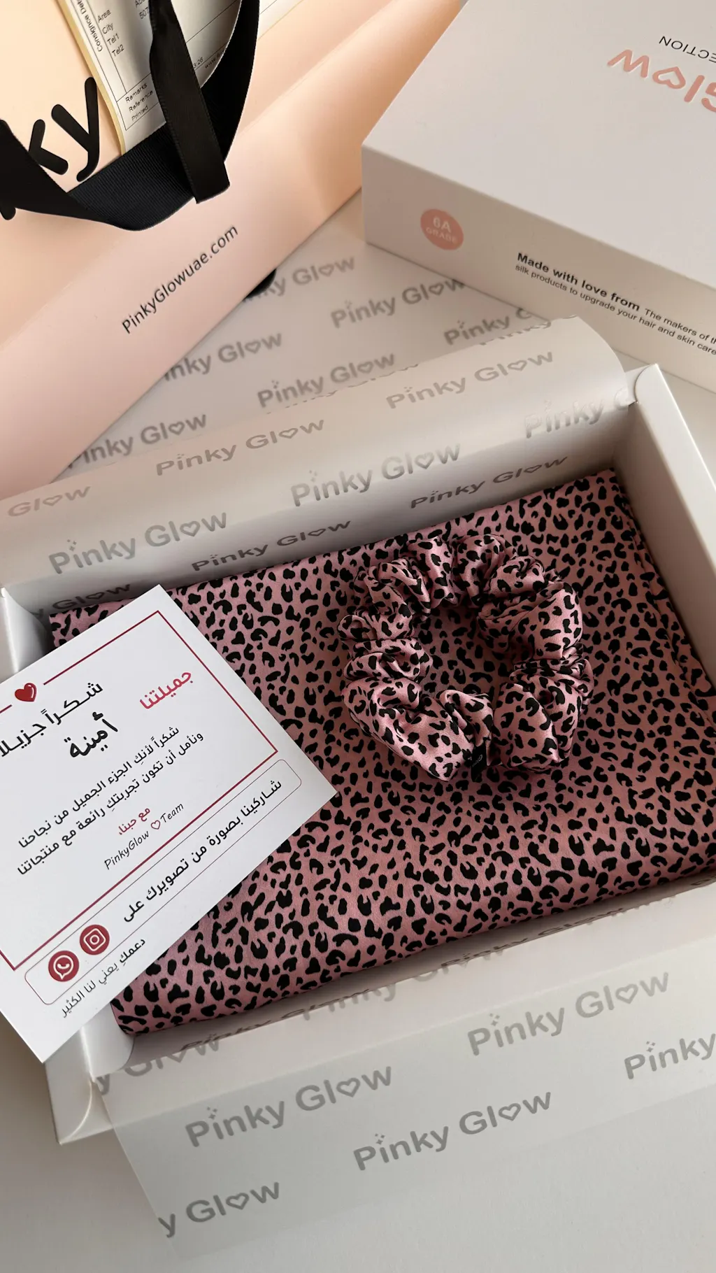 ملاحظة: جميع منتجات حرير بينك جلو حاصلة على شهادة جودة الحرير