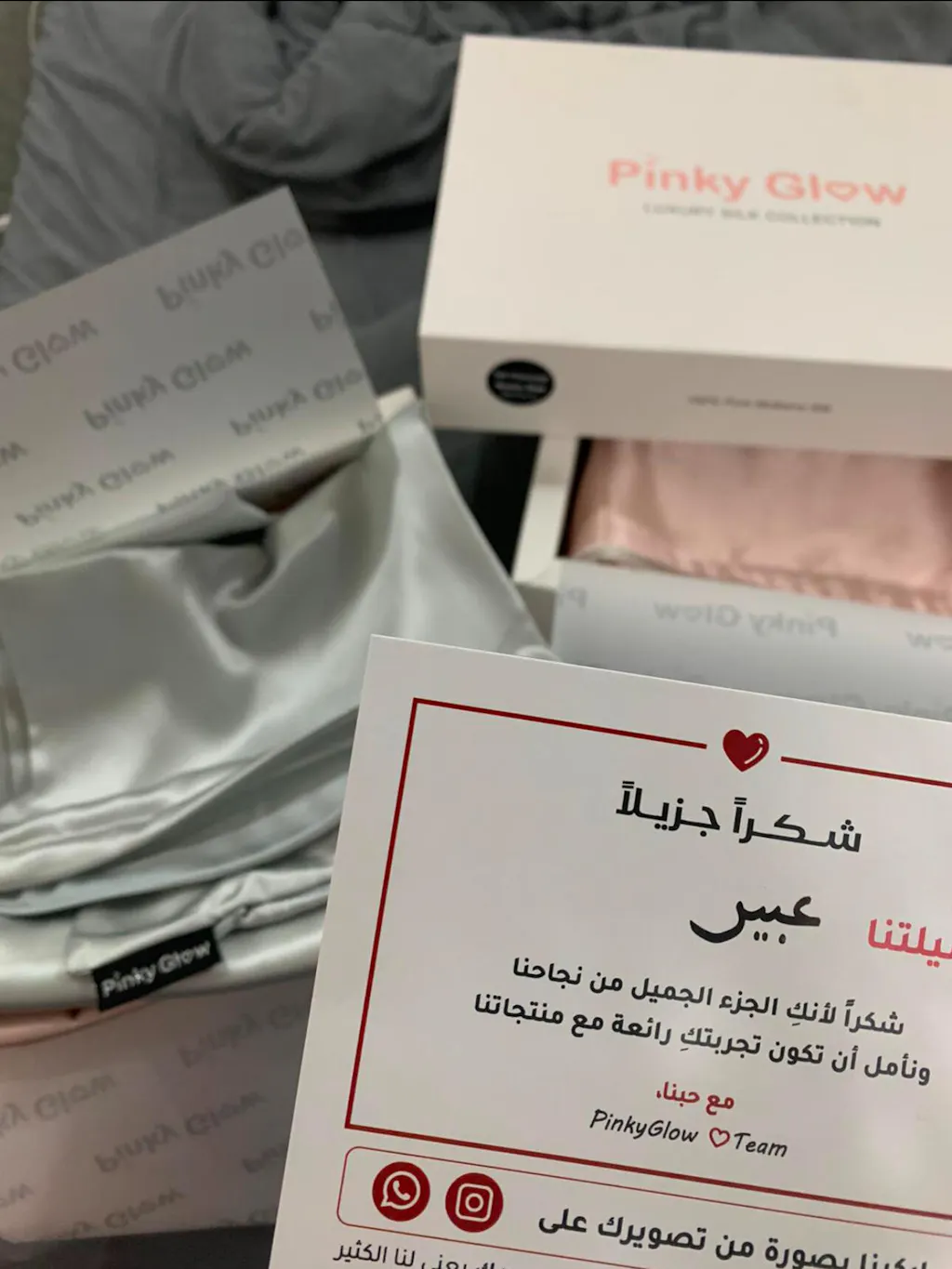 ملاحظة: جميع منتجات حرير بينك جلو حاصلة على شهادة جودة الحرير
