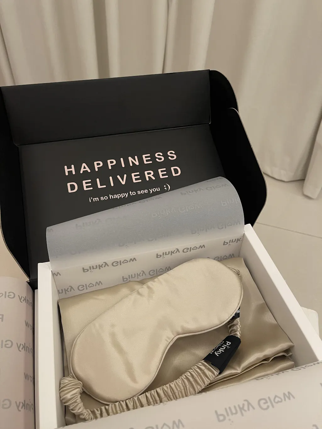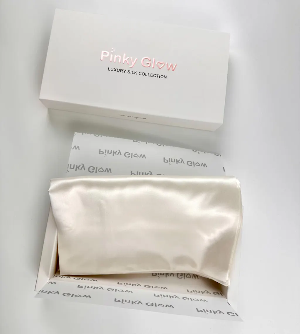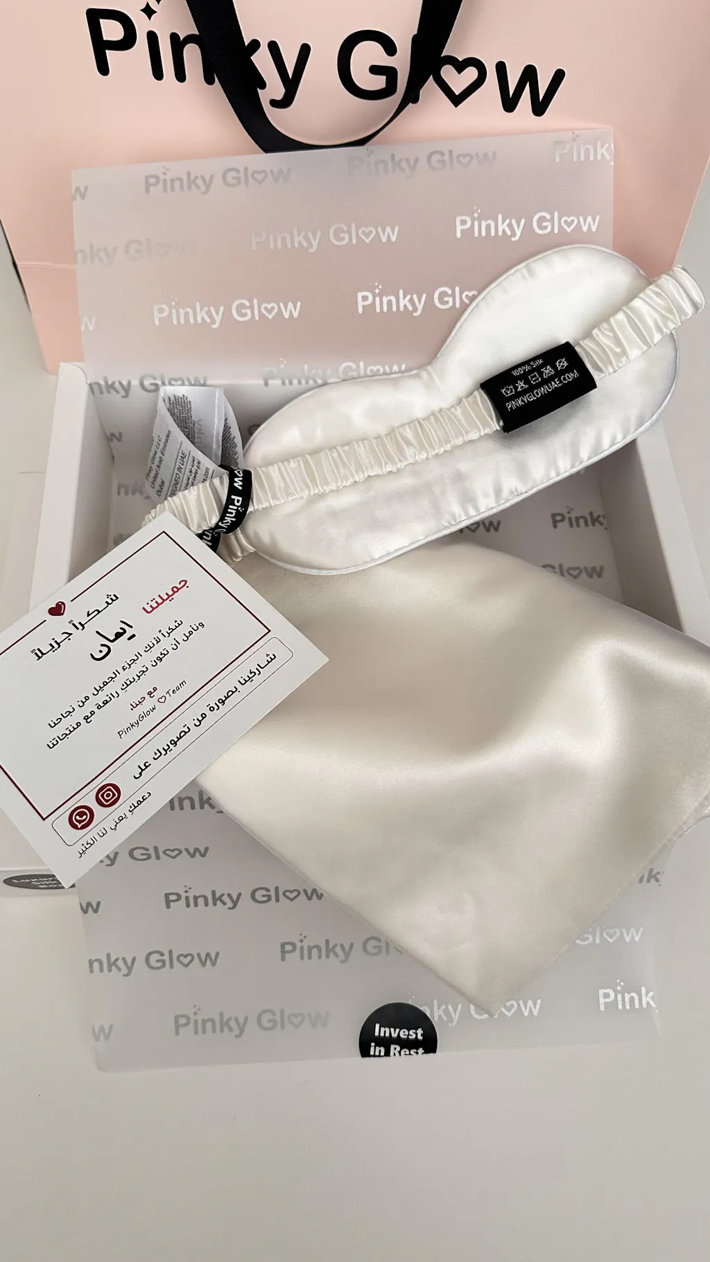 استمتعي بتجربة النوم الفاخرة مع مجموعة سليب بوكس من ( بينك جلو ) التي تضم منتجين حرير مصنوعة من الحرير النقي بنسبة 100%